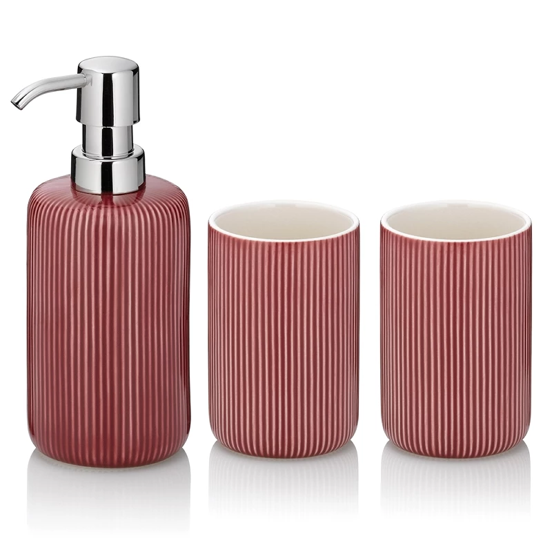 Sie benötigen einen hübschen Seifenspender und passende Becher in der Farbe Rot für Ihr Badezimmer? Dann sollten Sie zugreifen! Eine hübsche himbeerrote Farbe in Kombination mit einem eleganten Rillendesign sind die Hauptmerkmale dieser schönen Serie. Aus der Serie Ava finden Sie auch weitere Accessoires und andere Farben!