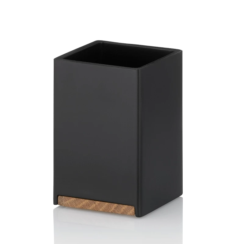 Becher Cube Black aus Poly/Eichenholz in schwarz. Maße: 7 x 7 x 11 cm.