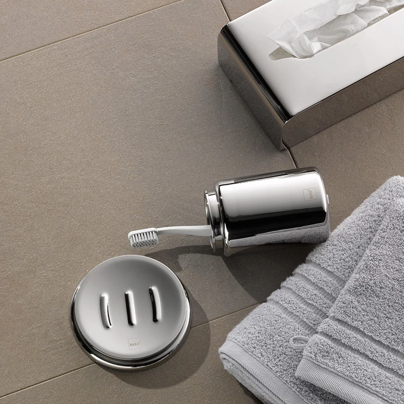 Egal in welchem Stil Sie Ihr Badezimmer eingerichtet haben – die zeitlos schönen Artikel der Serie Faber fügen sich wunderbar ein. Geben Sie Ihrer Zahnbürste einen stilechten Platz, im Becher der Serie Faber.