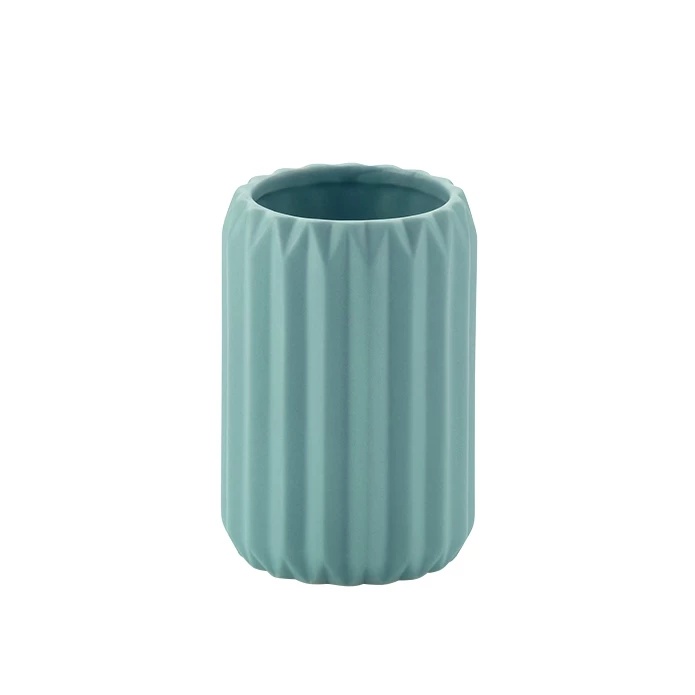 Badezimmerbecher Origami aus Keramik in der Farbe Aqua in matter Optik. Höhe 10,5 cm, Ø 7,5 cm.