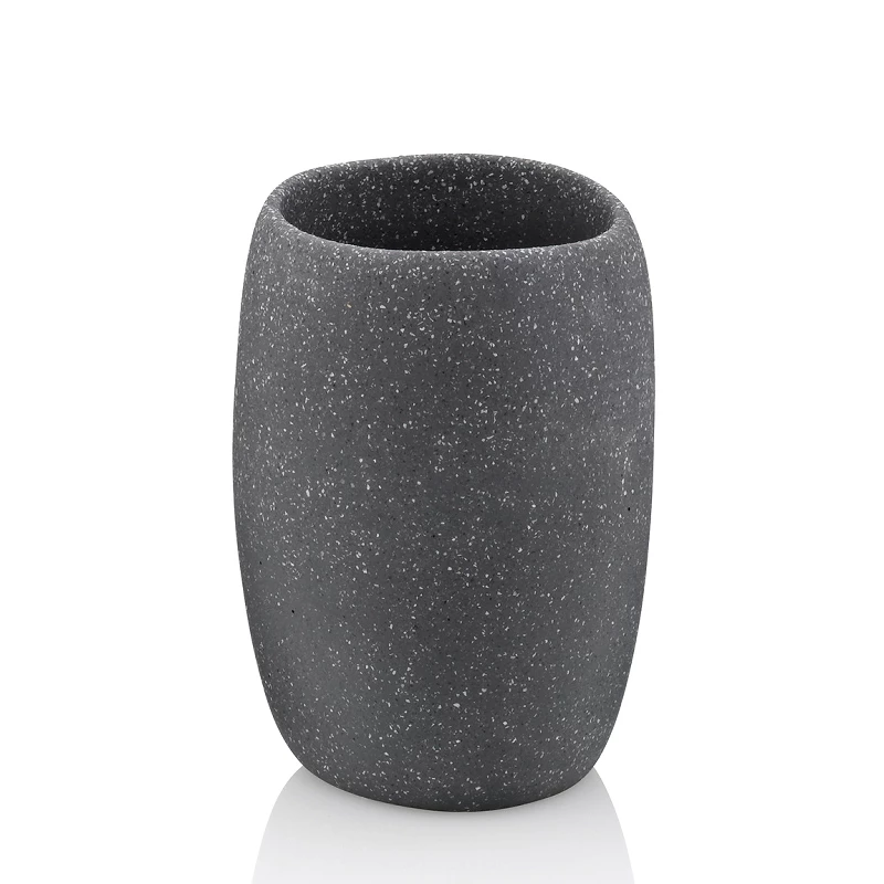 Becher Roda aus Zement mit Stonefinish in dunkelgrauer Optik. Maße: Höhe 10,5 cm, Ø 7,5 cm.