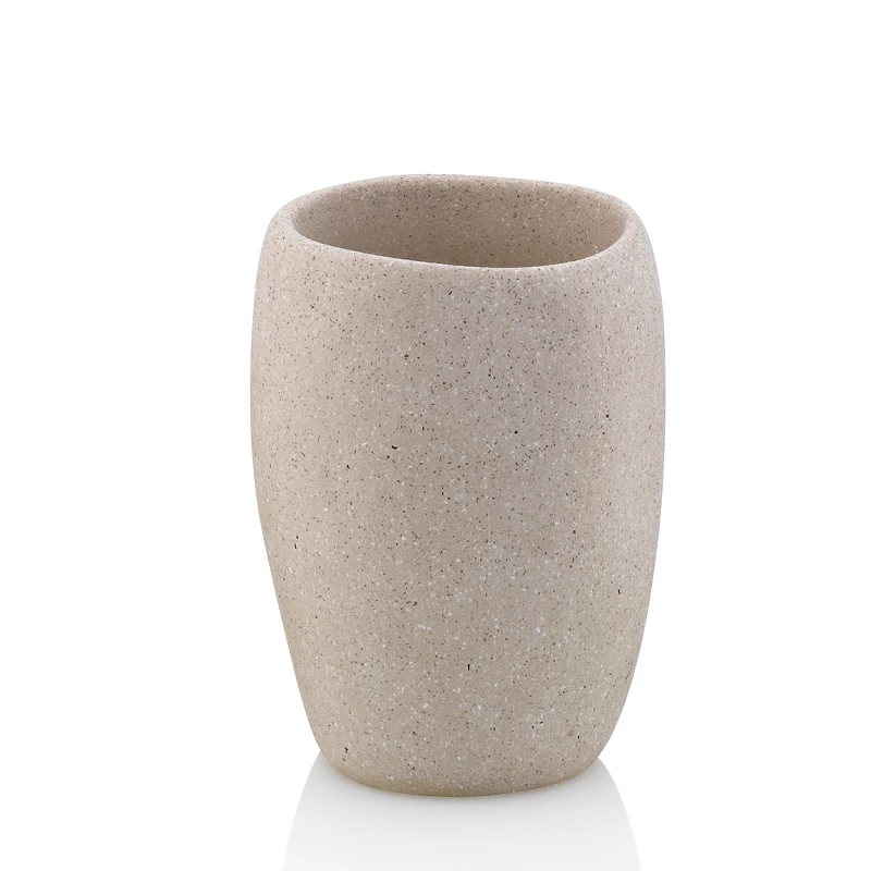 Becher Roda aus Zement mit Stonefinish in beiger Optik. Maße: Höhe 10,5 cm, Ø 7,5 cm.