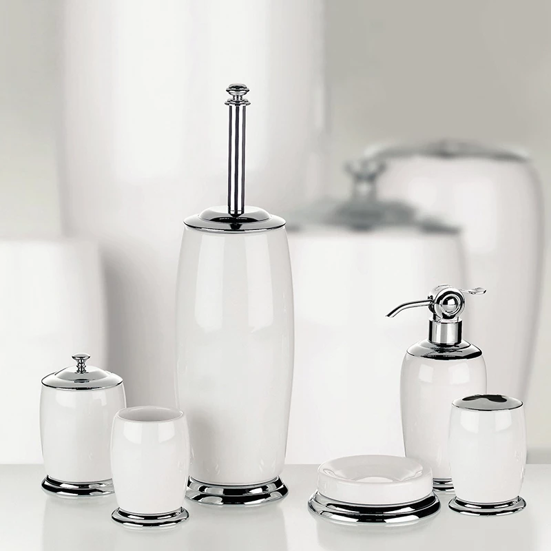 Die hochwertigen Badaccessoires aus weißglänzendem Keramik, kombiniert mit glänzendem Edelstahl, lassen Ihr Herz höher schlagen!
