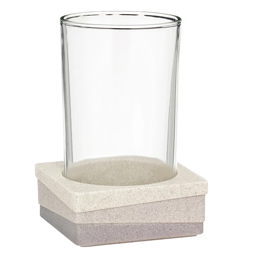 Becher Valura mit Unterteil aus Poly und einem Glas, 7,5 x 7,5 x 11 cm.