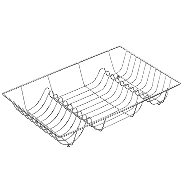 Geschirrabtropfkorb aus verchromtem Metall. Maße 48 x 31,5 cm.