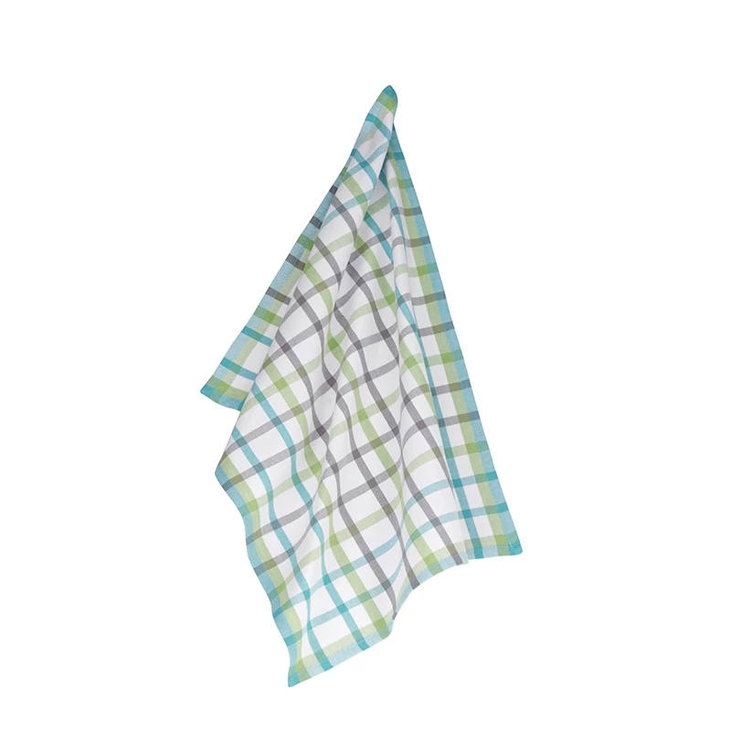 Geschirrtuch Carla aus 100% Baumwolle mit Karomuster in den Farben Weiß, Grau, Pastellgrün und Pastelltürkis. Maße: 70 x 50 cm.