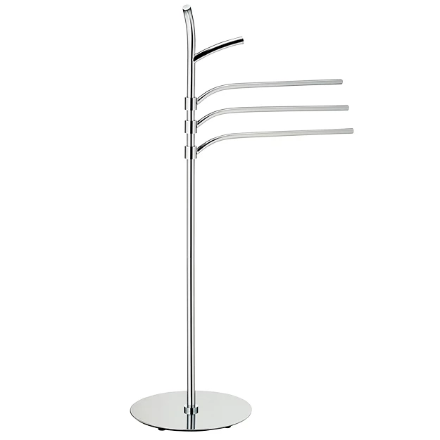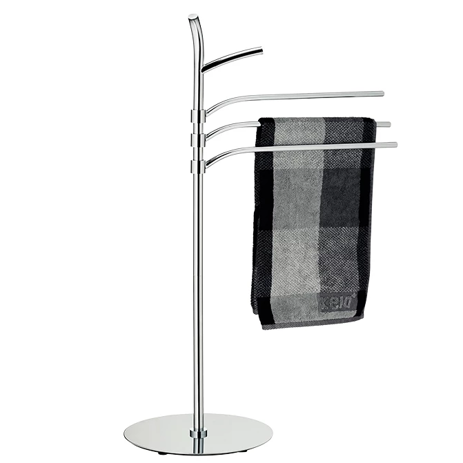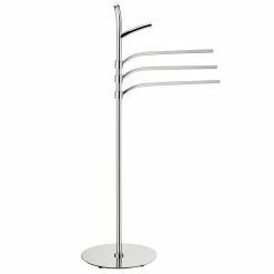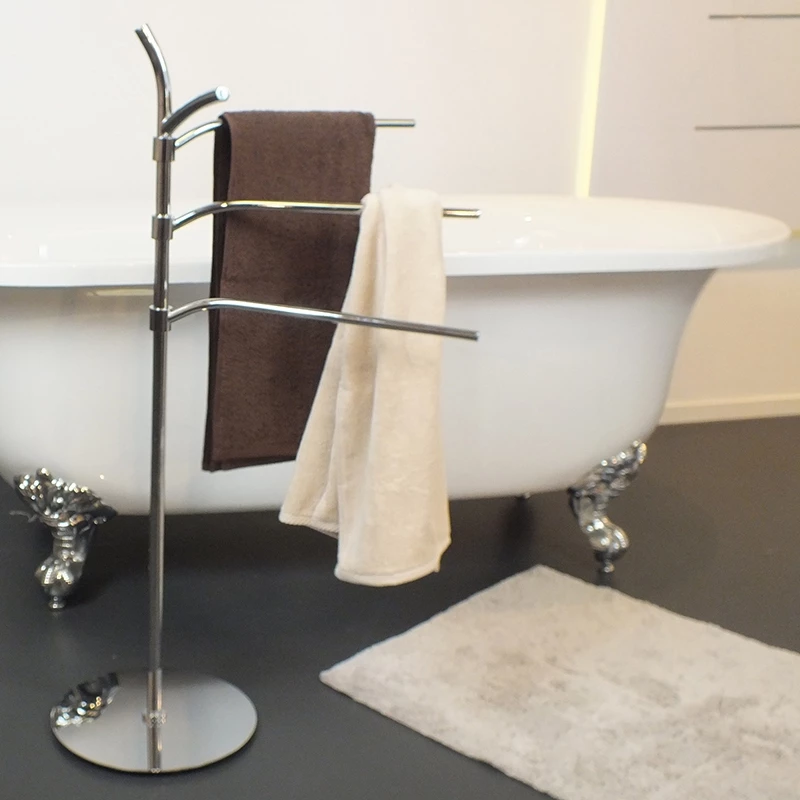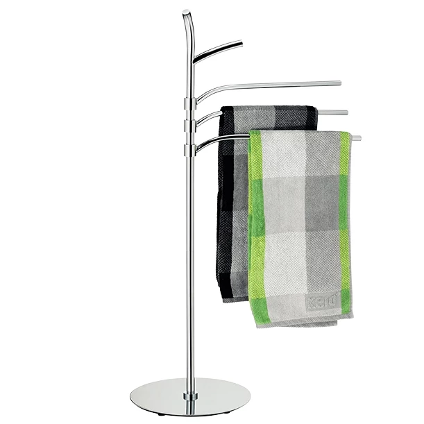 Handtuchhalter Saltus – 98,5 cm hoch, aus verchromtem Metall und glänzender Oberfläche. Die Handtuchstangen sind 40,5 cm lang. Ø 30 cm.