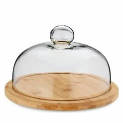 Glaskäseglocke mit Bambus-Holzbrett, 24cm Durchmesser und 15,5cm Höhe