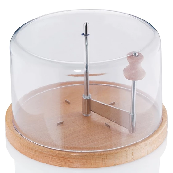 Mit dem Käsehobel aus Buchenholz lassen sich feine und wunderschöne Käse-Rosetten schaben. Damit können Sie nicht nur Ihre Teller dekorieren und somit Ihre Freunde und Familienmitglieder begeistern – Genießen Sie durch die Art und Weise käse zu schneide das volle Aroma des Käses. Die Kunststoffhaube sorgt dabei für eine längere Frische und bietet dem Käse Schutz.