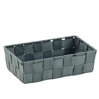 Korb Alvaro aus stabilem PP-Faserband in der Farbe grau, Maße: 23x15x6cm.