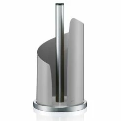Küchenrollenhalter Stella aus Edelstahl/Metall in hellgrau, 33 cm hoch, Ø 15 cm.