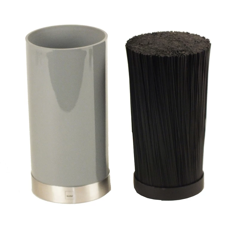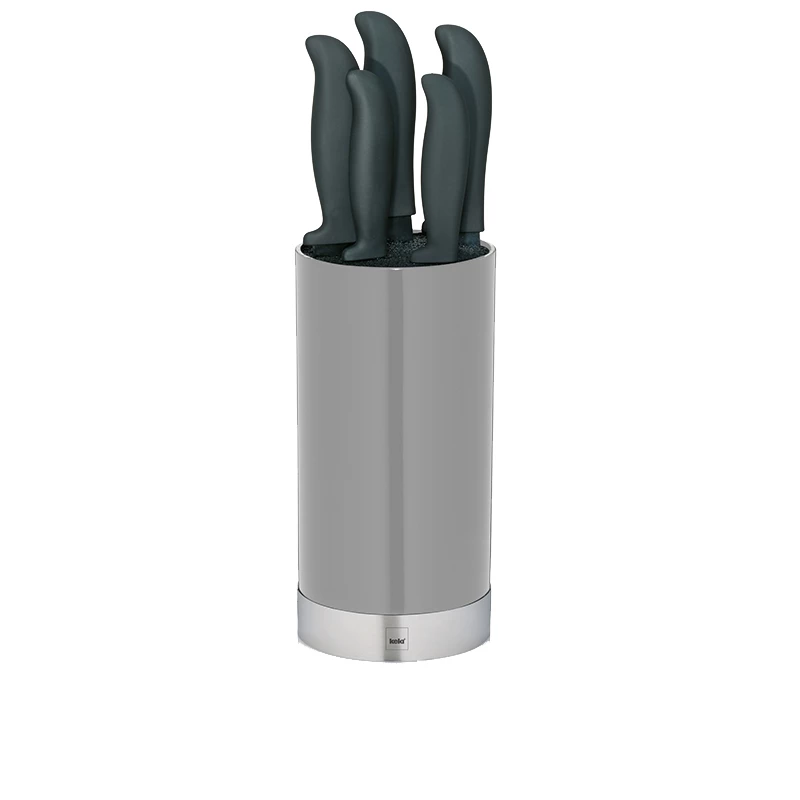 Messerblock Acida, PP-Kunststoff grau, 22,5 cm hoch, 11 cm Ø. Höhe mit Messer: 34,5 cm.