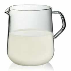 Milchkrug Fontana aus Borosilikatglas für 700 ml Milch. Höhe 12,5 cm, Ø 9 cm.