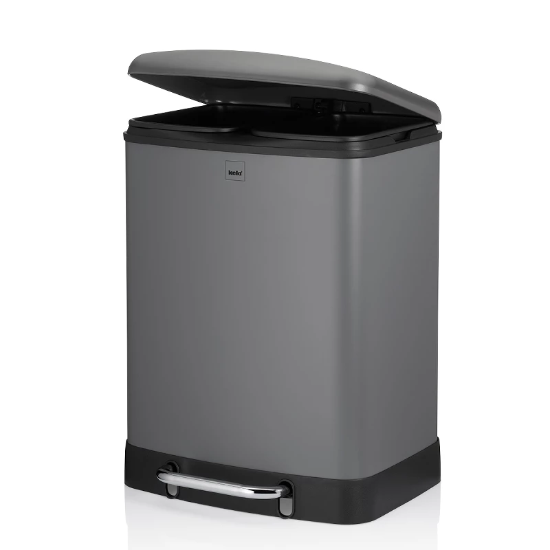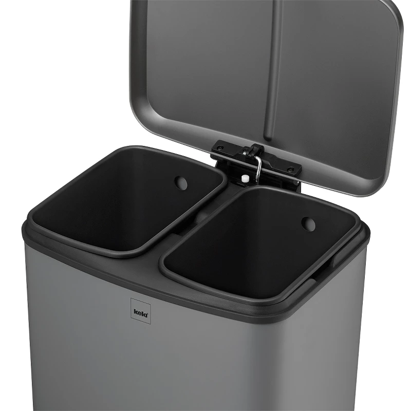Die Serie Davino von kela hat Zuwachs bekommen. Optisch passend zu den bereits vorhandenen Treteimern gibt es nun einen Mülltrenner. Managen Sie Ihre Abfälle im Haushalt. Hierfür können ganz praktisch 2 separate Fächer á 12 L mit einzeln entnehmbaren Inneneimern genutzt werden. Die Inneneimer sind zudem mit einer Öffnung ausgestattet, welche die Fixierung des Müllbeutels erleichtern.