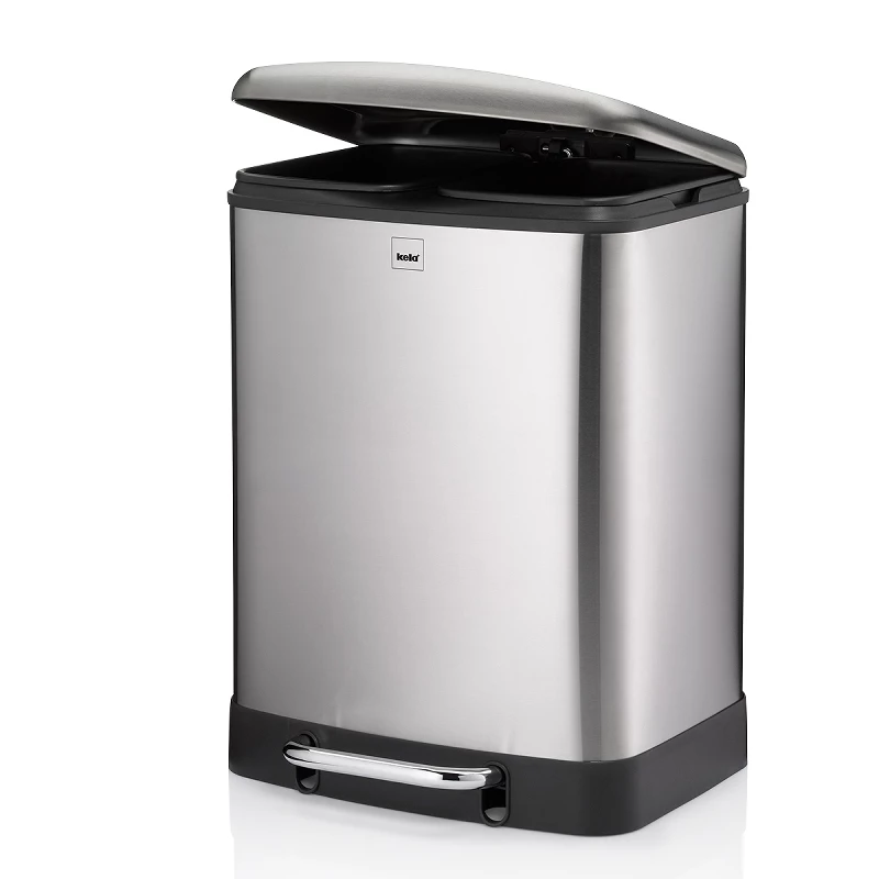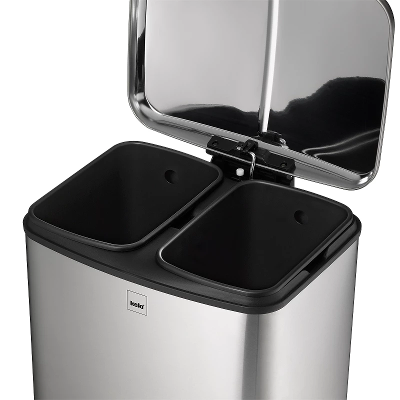 Die Serie Davino von kela hat Zuwachs bekommen. Optisch passend zu den bereits vorhandenen Treteimern gibt es nun einen Mülltrenner. Managen Sie Ihre Abfälle im Haushalt. Hierfür können ganz praktisch 2 separate Fächer á 12 L mit einzeln entnehmbaren Inneneimern genutzt werden. Die Inneneimer sind zudem mit einer Öffnung ausgestattet, welche die Fixierung des Müllbeutels erleichtern.