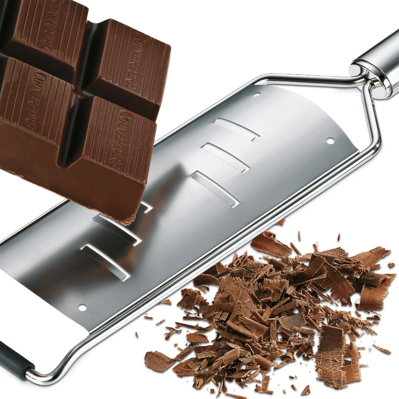Diese Raspel Rondo eignet sich zum Reiben von Schokoladenraspeln, sie kann aber auch als Trüffelhobel verwendet werden. Ihre kompakte Form mit konkaver Reibefläche macht sie zur alltagstauglichen Küchenreibe.