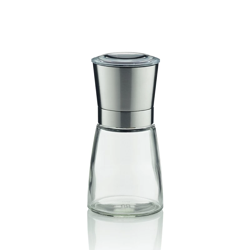 Salz- und Pfeffermühle Molino aus Glas mit Keramikmahlwerk und Edelstahlring. 200 ml. Höhe 13,5 cm.
