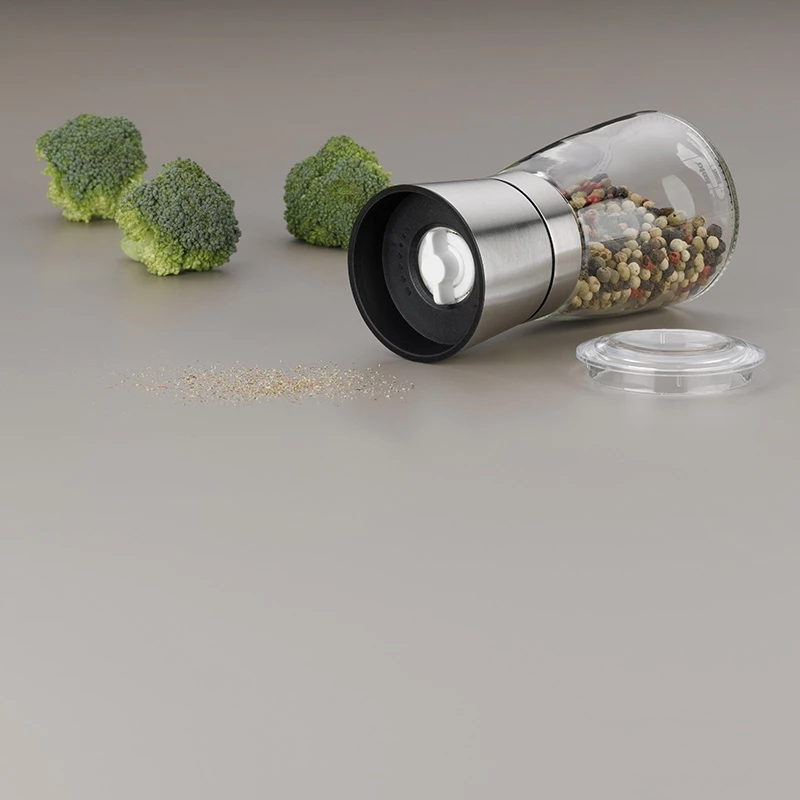 Beim Würzen hat jeder andere Vorlieben. Am besten man ermöglicht am Tisch bei Bedarf das Nachwürzen. Mit diesem Salz- und Pfeffersteuer aus Glas, machen die Gewürze bei Tisch zudem noch eine gute Figur. Ein zuverlässiges Keramikmahlwerk ist Teil dieser Streuer und ermöglicht ein zuverlässiges Produkt, welches gut in der Hand liegt. Ein Edelstahlring rundest das Produktdesign schön ab