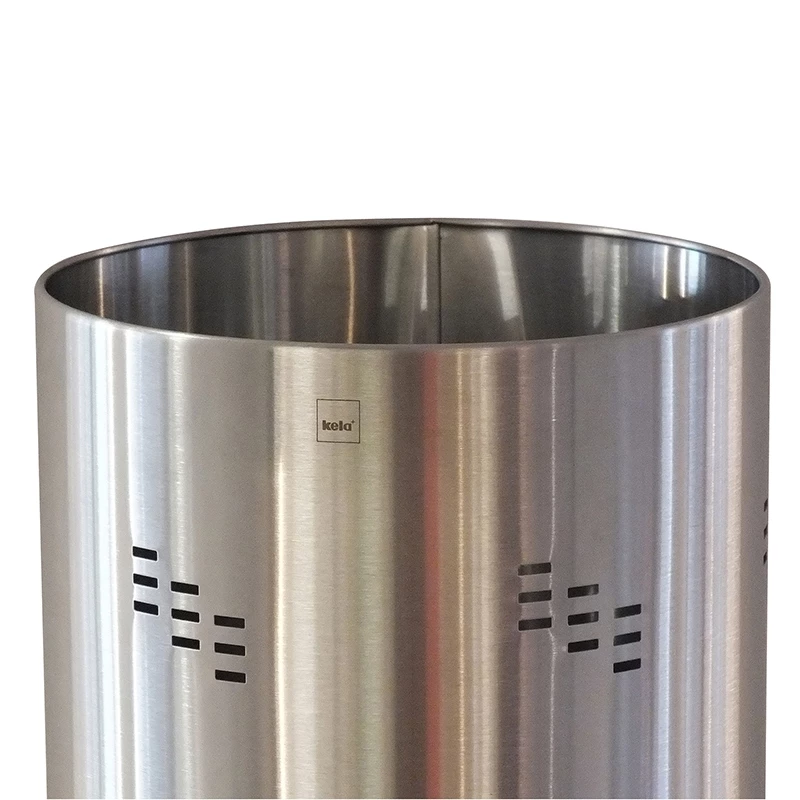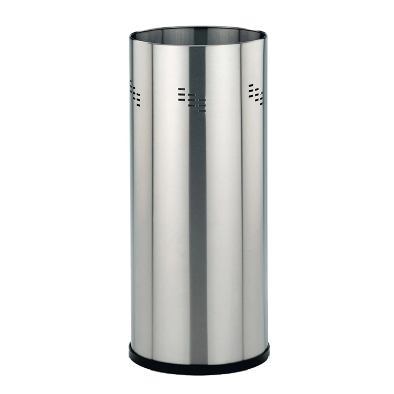Der Schirmständer SWING ist aus Edelstahl und umlaufend mit einem Lochmuster verziert. Durch die Gummierung an der Unterseite ist der Schirmständer sehr standfest.