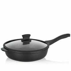 Schöne, leckere Schmorgerichte – ermöglicht durch einen um 2 cm erhöhten Rand im Vergleich zu den anderen Pfannenvarianten dieser Serie. Ein Deckel mit Softtouchgriffen liegt dem Artikel bei.