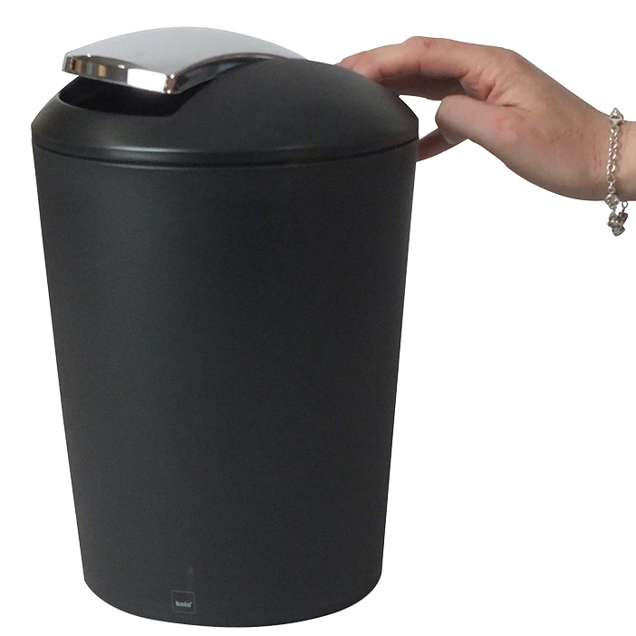 Schwingdeckeleimer Marta in Schwarz/Silber mit einem Fassungsvermögen von 5 l.