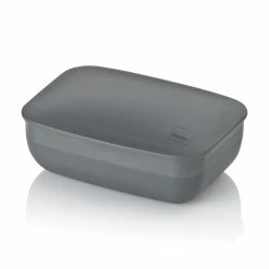 Seifendose Mari, dunkelgrau, aus PP-Kunststoff / TPR, verschließbar mit Deckel. Maße 11,5 x 8,5 x 4,5 cm.