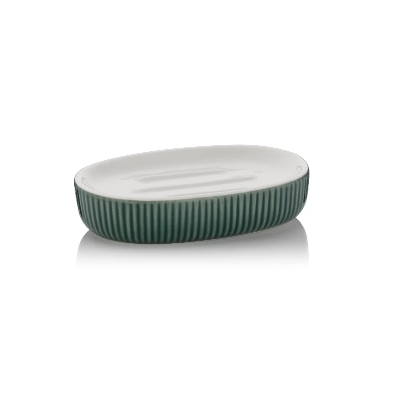 Seifenschale Ava aus Keramik in Alpengrün, Maße: 13,5 x 8,5 x 3,0 cm.