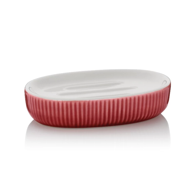 Seifenschale Ava aus Keramik in Himbeerrot, Maße: 13,5 x 8,5 x 3,0 cm.