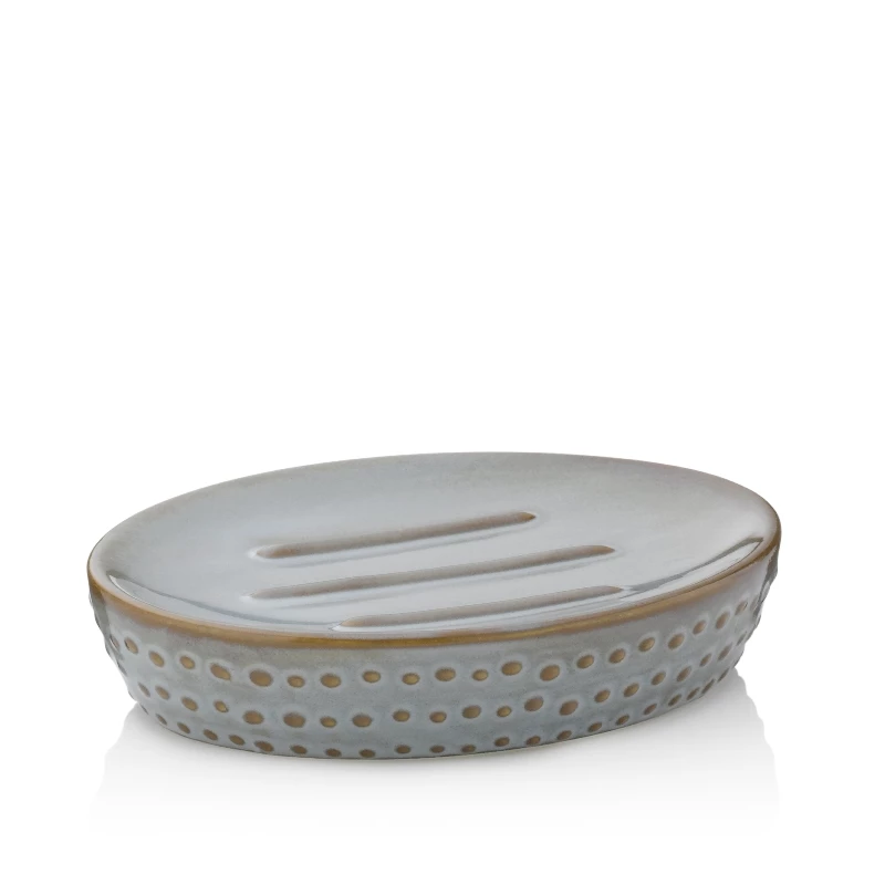 Die mit den Punkten… Die Badezimmerserie Dots aus pflegeleichter Keramik überzeugt durch eine auffällige Oberfläche in grau-brauner Optik oder wahlweise im Mokkaton. Da spürt man jeden Punkt wenn man mit den Fingern über die Oberfläche fährt. Das macht das Accessoire zu etwas Besonderem. Die nützliche, runde Seifenschale wollen Sie nie mehr missen. Auf ihr lässt sich Ihre Lieblingsseife wunderbar aufbewahren.