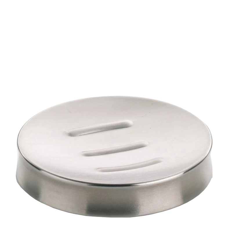 Seifenablage Elegance aus Edelstahl, matt. Die runde Seifenschale hat einen Duchmesser von 11 cm.