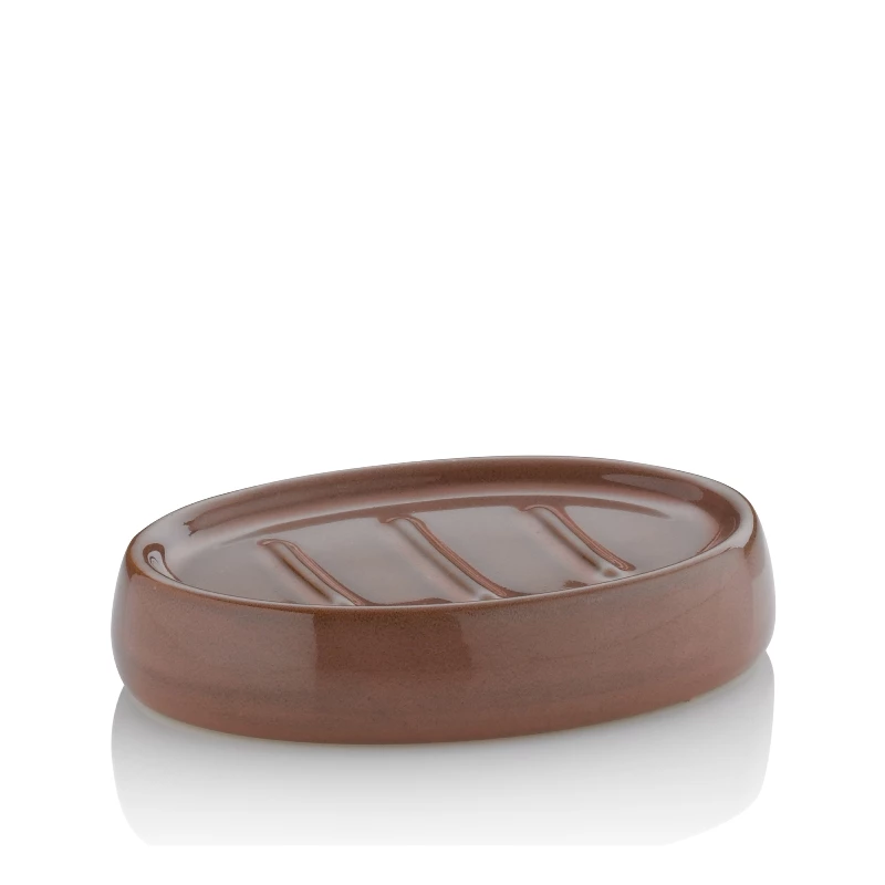 Seifenschale Liana aus Keramik in der Farbe Wolkenrosa. Maße: 12 x 10 x 2,5 cm.