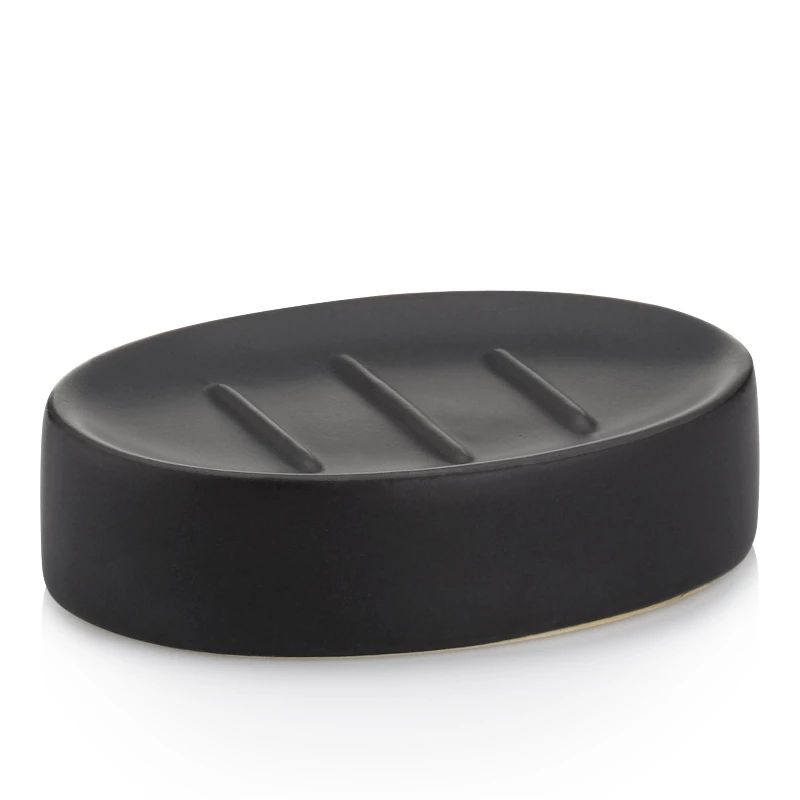 Seifenschale Matsi aus Keramik in Schwarz in der Größe: 12,5 x 8,5 x 3 cm.