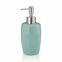Seifenspender Lindano aus Keramik in Mintgrün, Höhe 18cm, 7cmØ und 400 ml Fassungsvermögen.