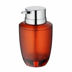 Bunte Transparenz für Ihr Badezimmer! Mit dieser Serie liegen Sie total im Trend. Auffällig ist die intensive Farbe und der elegant geformte Körper bzw. das Design. Die Pumpe des Seifenspenders besteht aus ABS-Kunststoff und ist verchromt. Mit dem durchsichtigen MS-Kunststoff des Seifenspenders sehen Sie sofort, ob Flüssigseife nachgefüllt werden muss. Die Höhe beträgt 15 cm und der Durchmesser 8,5 cm. Maximal ist der Seifenspender mit 350 ml Seife befüllbar.