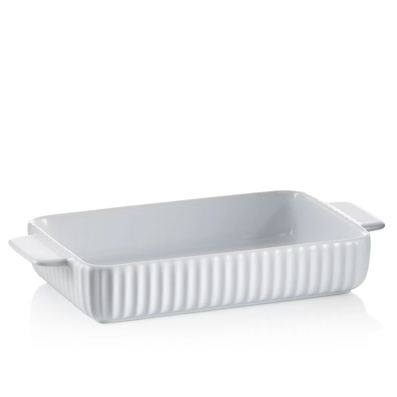Weiss-matte, geriffelte Servier- und Auflaufform Maila aus Keramik