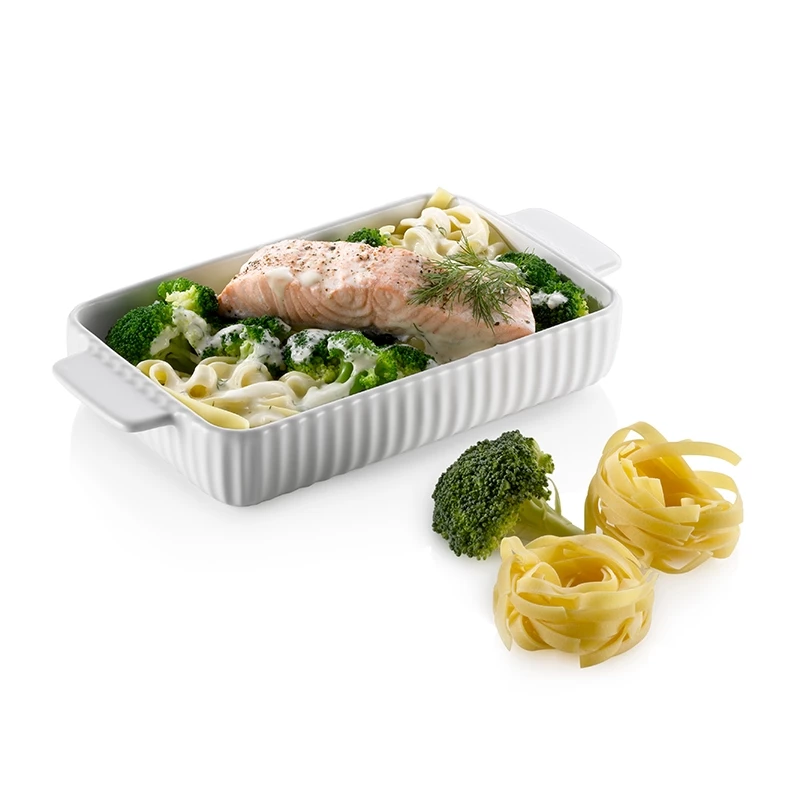 Bereiten Sie leckere Gerichte vor und servieren Sie diese mit unserer schönen Servier- und Auflaufform. Durch die Hitzebeständigkeit von bis zu 280°C eignet sich unsere Auflaufform bestens zum Servieren von überbackenen Gerichten die man im Backofen zubereitet wie z.B. Lasagne. Die beidseitigen Griffe erleichtern und unterstützen die Handhabbarkeit der Auflaufform. Die durchgehende äußere Riffelung verleiht der Auflaufform zusätzlich eine besondere Optik und gilt als Eye-Catcher auf jedem Esstisch.