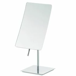 Der Standspiegel Saguna hat einen praktischen Stab zum Schwenken der Spiegelfläche. Diese Fläche lässt sich somit senkrecht und waagrecht stellen. Die Spiegelfläche selbst mit 5-fach-Vergrößerung hat eine Fläche von 21 x 13 cm, die Gesamthöhe liegt bei 30,5 cm.