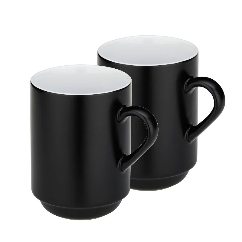 Tassen-Set Mattia aus Keramik bestehend aus 2 Tassen, Schwarz. 300 ml fasst eine Tasse, Durchmesser 7,5 cm.