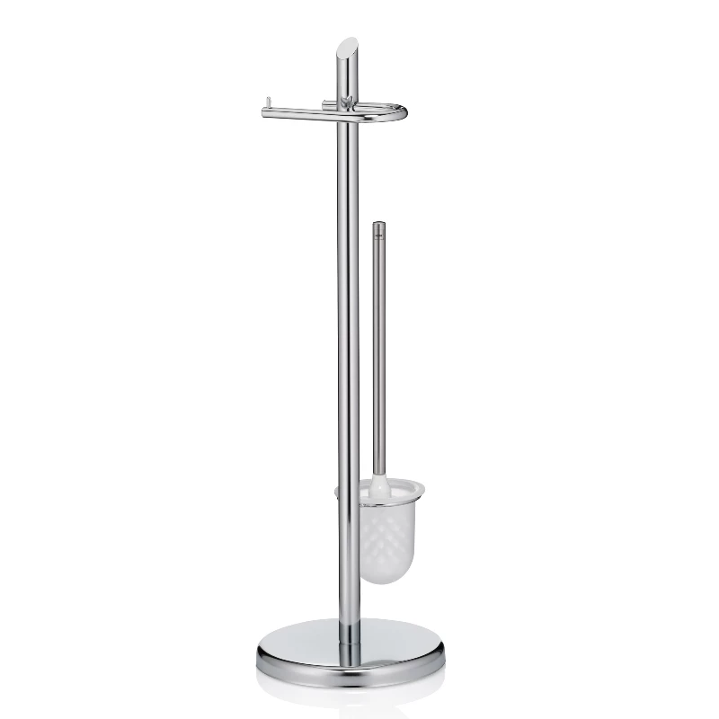 Toilettengarnitur Ken aus Metall in silber, glänzend verchromt. Höhe 73,0 cm, Durchmesser der Bodenplatte: 22,0 cm.