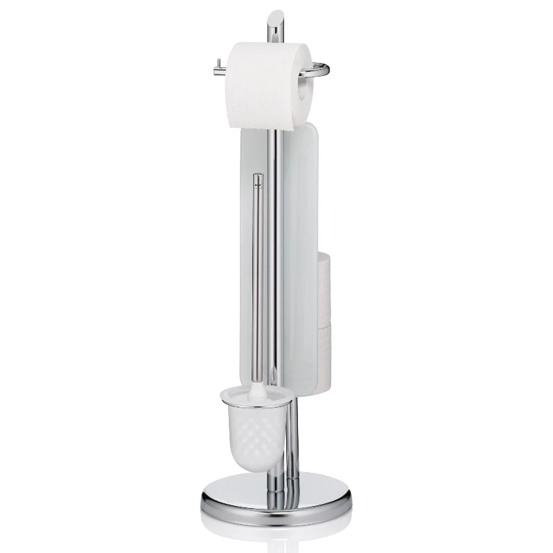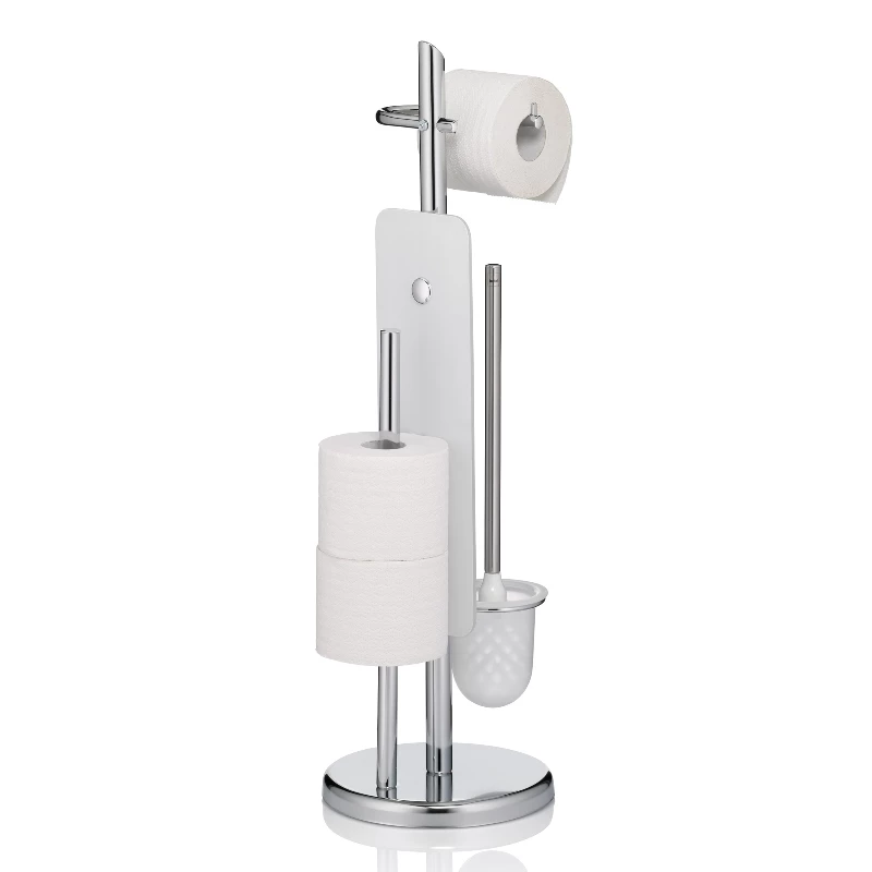 An der Standgarnitur kann eine Rolle WC-Papier eingehängt werden und hinter der Trennwand finden weitere Ersatzrollen ihren Platz.