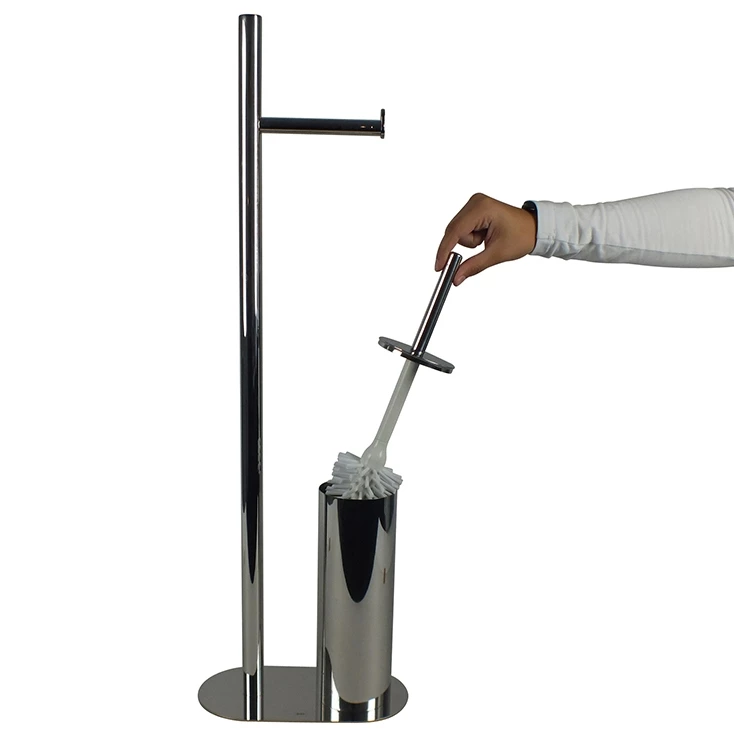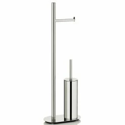 Nun gibt es passend zu den Wand-Accessoires der Serie Lucido, wie zum Beispiel Handtuchhalter, Ablage, Haken oder Wand-Seifenspender, auch die passenden Artikel für den Badezimmerboden. Die Toilettengarnitur ist aus hochwertigem Edelstahl 18/10 gefertigt und bringt einen Hauch von Luxus ins Bad. Die abgerundete Bodenplatte ist perfekt auf das Design der Wand-Accessoires abgestimmt.