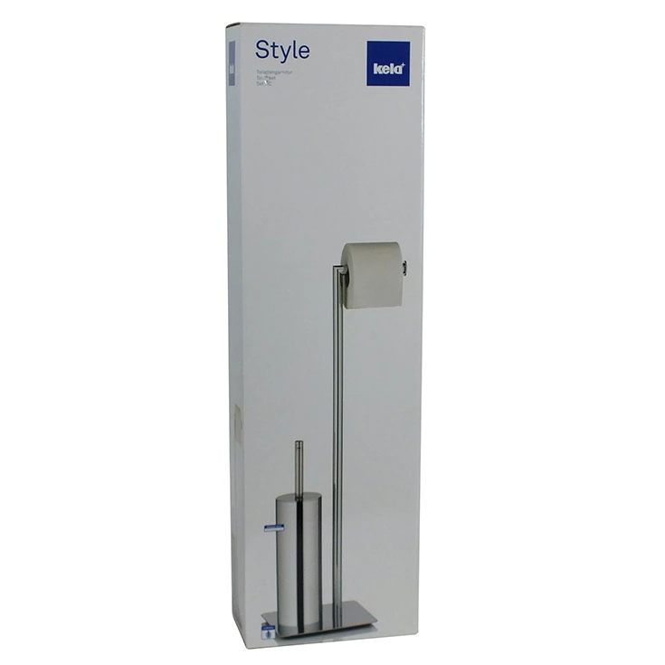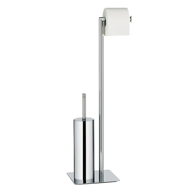 Die Toilettengarnitur STYLE zeigt sich mit dem quadratischen Standfuß, dem geschlossenen WC-Bürstenbehälter und der schlanken Toilettenpapierhalterung elegant und formschön.