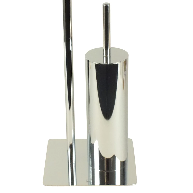 Toilettengarnitur aus verchromtem Metall, Bürstenbehälter aus Edelstahl.