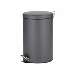 Treteimer Malta aus Metall, farbig beschichtet in Dunkelgrau, matt. Mit Silent Close-Funktion! 40 cm hoch, 25 cm Ø und 12,0 Liter Volumen.