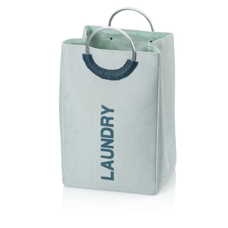 Wäschesack Palma aus Polyester in der Farbe Polarblau mit Tragegriffen aus Aluminium. Maße: 36 x 30 x 56cm.