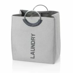 Wäschesortierer Palma aus Polyester in der Farbe Felsgrau mit 2 Fächern und Tragegriff aus Aluminium. Maße: 50 x 29 x 54 cm.