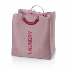 Wäschesortierer Palma aus Polyester in der Farbe Altrosa mit 2 Fächern und Tragegriff aus Aluminium. Maße: 50 x 29 x 54 cm.