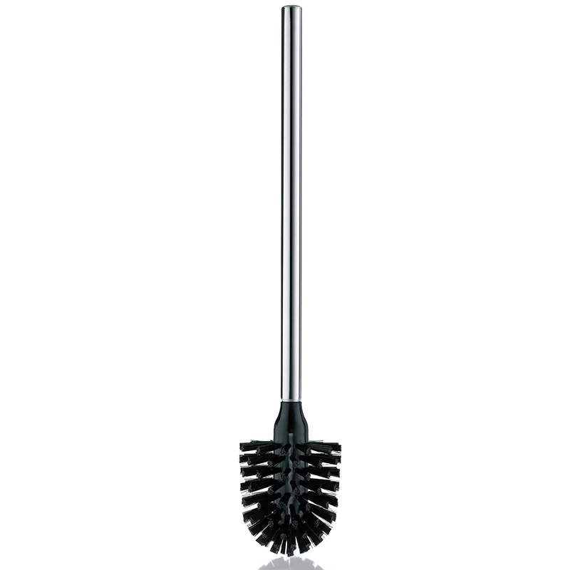 Die Ersatz-WC-Bürste mit Griff und schwarzem Bürstenkopf in einer Softvariante hat eine Länge von 42,5 cm und einen Durchmesser von 8 cm. Mit Griff aus Edelstahl in matter Optik.