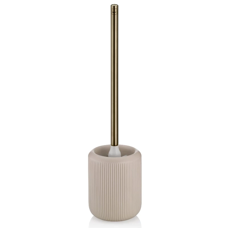 Adele – erdige Töne verschmelzen mit Material und Form. Die offene WC-Garnitur Adele aus Keramik hat eine Rillenstruktur die eine sanfte Haptik hervorbringt. Der Gold verchromte Bürstenstiel zeigt das Adele eine sehr elegante Serie ist. In den Farben Offwhite, Wolkenrosa und Silbergrau kann man mit dieser Serie nahezu jedes Badezimmer eleganter machen. Zu der WC-Garnitur kann man sein Badezimmer mit einer Seifenschale, einem Becher und einem Seifenspender von der Serie Adele ausstatten.