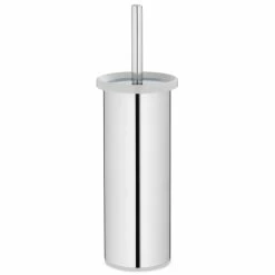 WC-Garnitur Alor als Standmodell (hoch) aus Edelstahl 18/10 mit hellgrauem Kunststoffbecher und hellgrauem Bürstenkopf. Die Bürste und der Bürstengriff von dieser Garnitur sind austauschbar. Es passt die Bürste La Brosse in allen Farben/Varianten, egal ob mit oder ohne Griff. (Art. 20141, 20145, etc.) Gesamthöhe inklusive Griff 38 cm, Ø 11,5 cm.